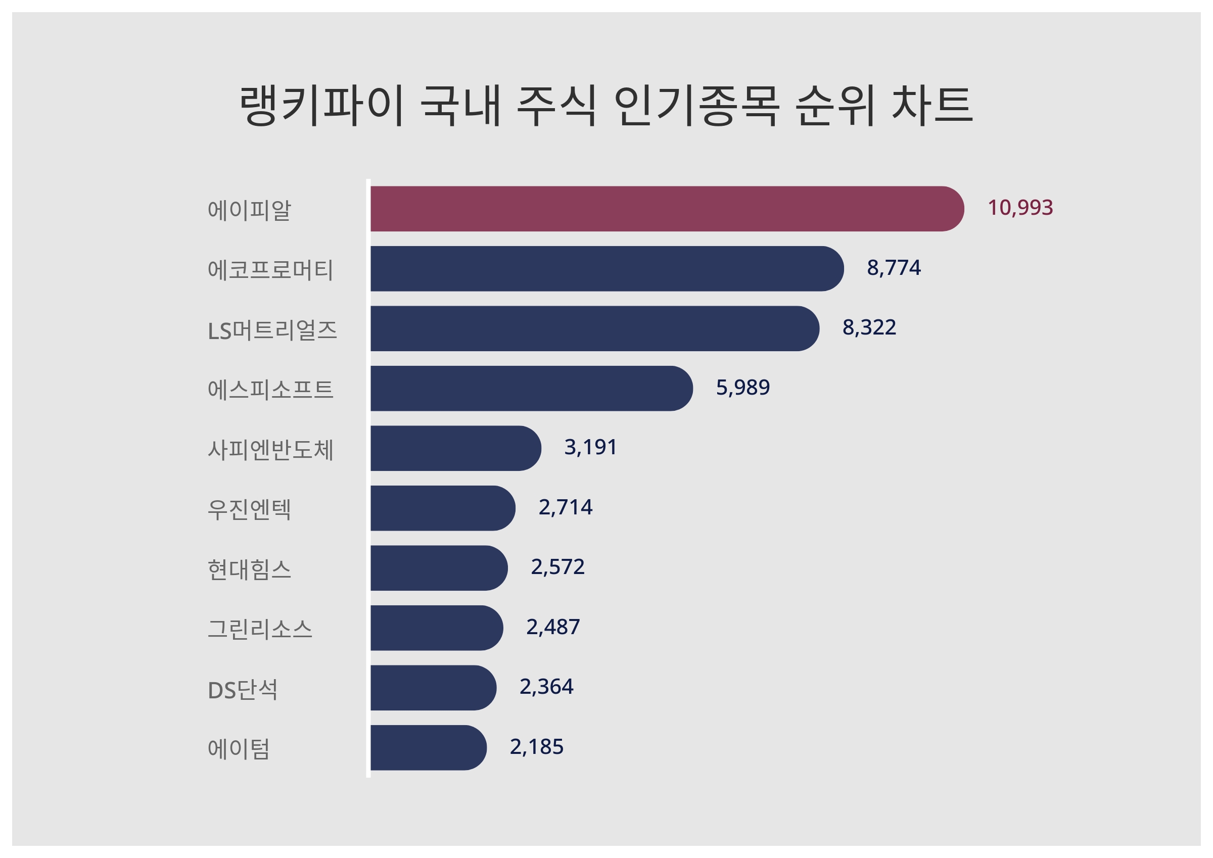 [출처: 랭키파이 국내 주식 인기종목 트렌드 테이블]