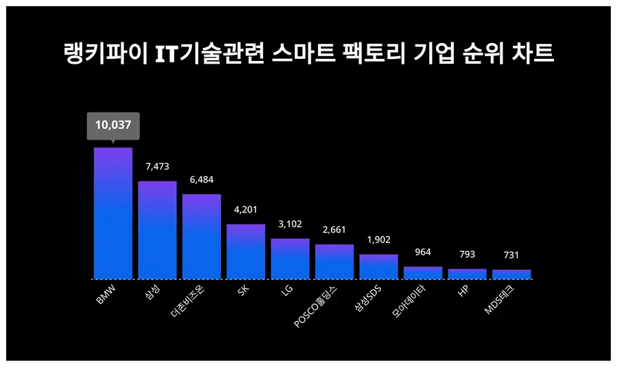 ▲IT기술관련 스마트 팩토리 기업 트렌드 지수 분석 결과 ⓒ랭키파이