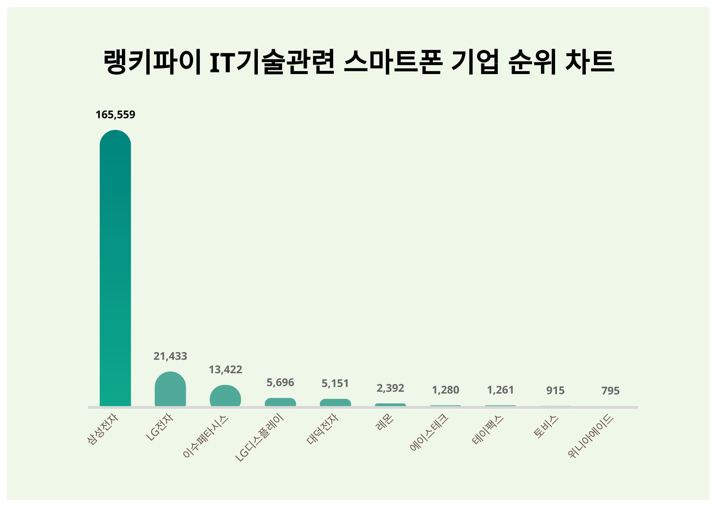 ▲IT기술관련 스마트폰 기업 트렌드 지수 분석 결과 ⓒ랭키파이
