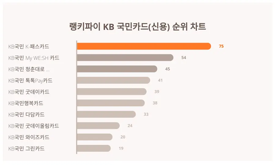| 1 | KB국민 K-패스카드 | 75 | 3% | 28% | 20% | 22% | 27% |