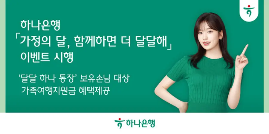 ‘가정의 달, 함께하면 더 달달해’ 이벤트는 오는 6월 14일까지 달달 하나 통장을 보유한 손님에게 추첨을 통해 가족여행 지원금을 지급한다. 현금처럼 쓸 수 있는 하나금융그룹 통합 멤버십 포인트 1백만 하나머니를 증정한다.