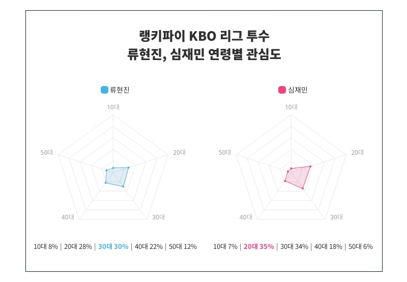 연령별 관심도 조사 결과, 류현진과 심재민은 다양한 연령층에서 관심을 받고 있음을 확인했다. 류현진은 특히 30대에서 30%의 높은 관심도를 기록했으며, 심재민은는 20대에서 35%의 지지를 얻었다.