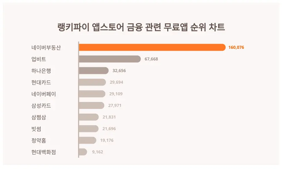 앱스토어 금융 관련 무료앱 부문에 대한 대중들의 관심이 늘어나면서 구체적인 순위에 대한 이목이 집중되고 있다. 특히, 해당 결과는 주 별로 변동되기 때문에 상위 순위로 꼽히기 치열한 경우가 많다.