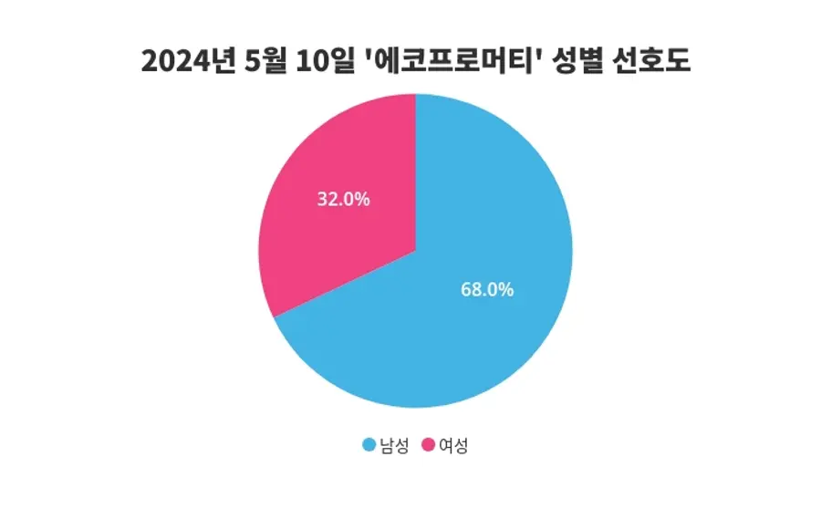 특히, 에코프로머티에 대한 성별 관심도 조사 결과, 남성이 68%의 비율로 더 높은 관심을 보이는 것으로 나타나, 이 인기 키워드에 대한 성별편차를 드러냈다.