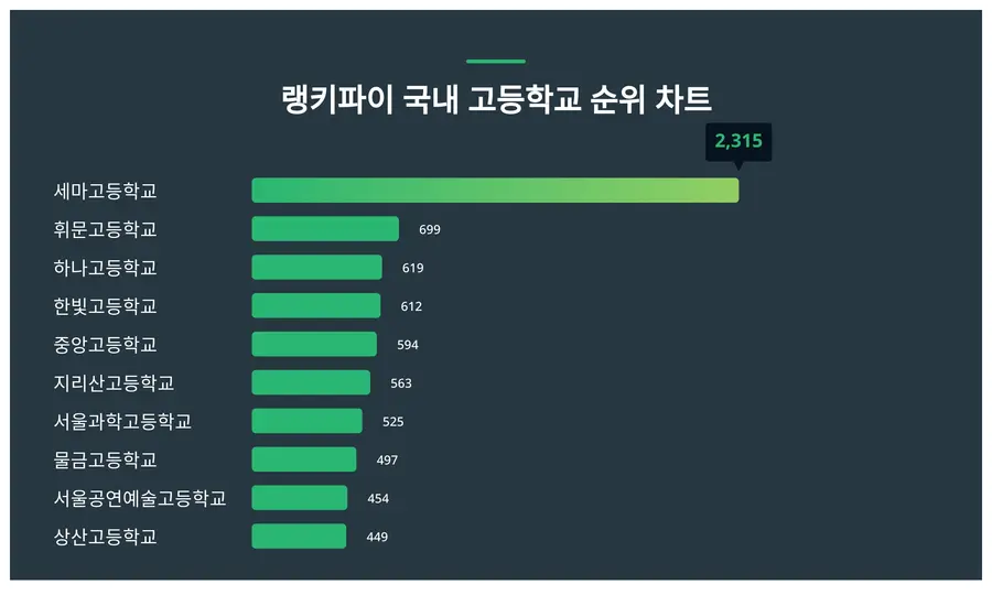 하나고등학교는 619포인트로 전주보다 263포인트 하락해 3위를 차지했다.