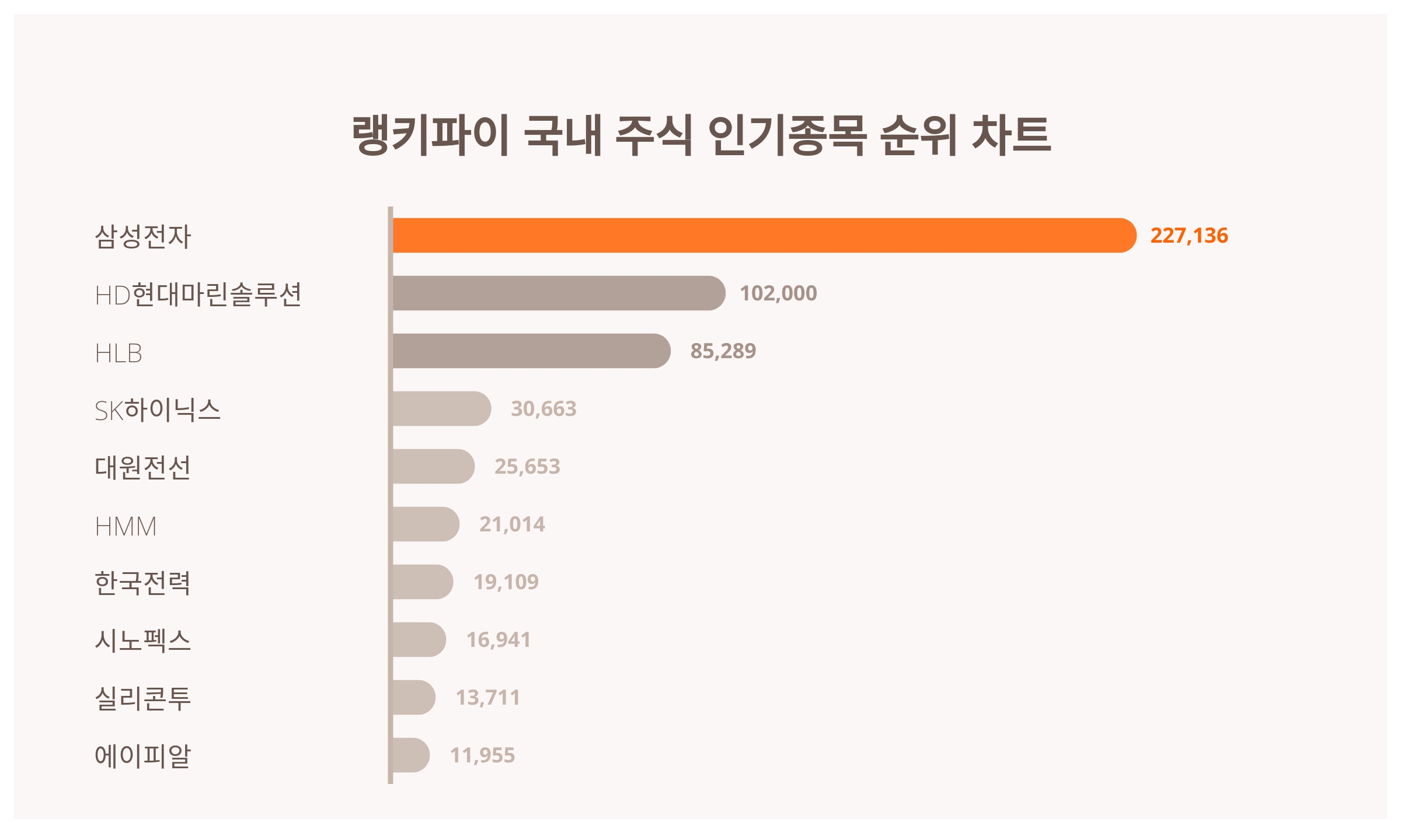 [출처: 랭키파이 국내 주식 인기종목 트렌드 테이블]
