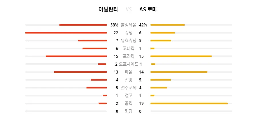 | 아탈란타 | 득점 | 도움 | 슈팅 | 유효슈팅 | 패스 | 인터셉트 | 패스차단 | 태클 | 파울 | 걷어내기 | 경고 | 퇴장 |