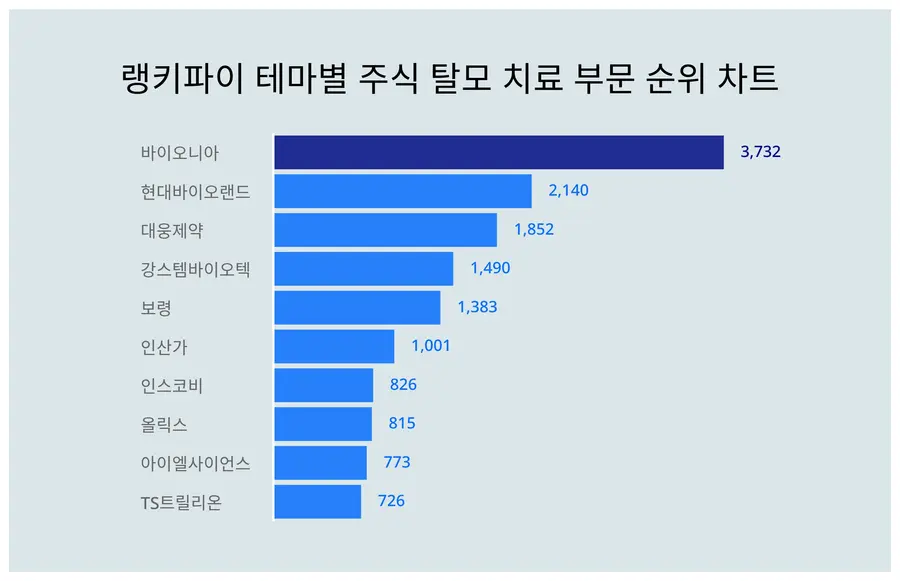 [출처: 랭키파이 테마별 주식 탈모 치료 부문 트렌드 테이블]