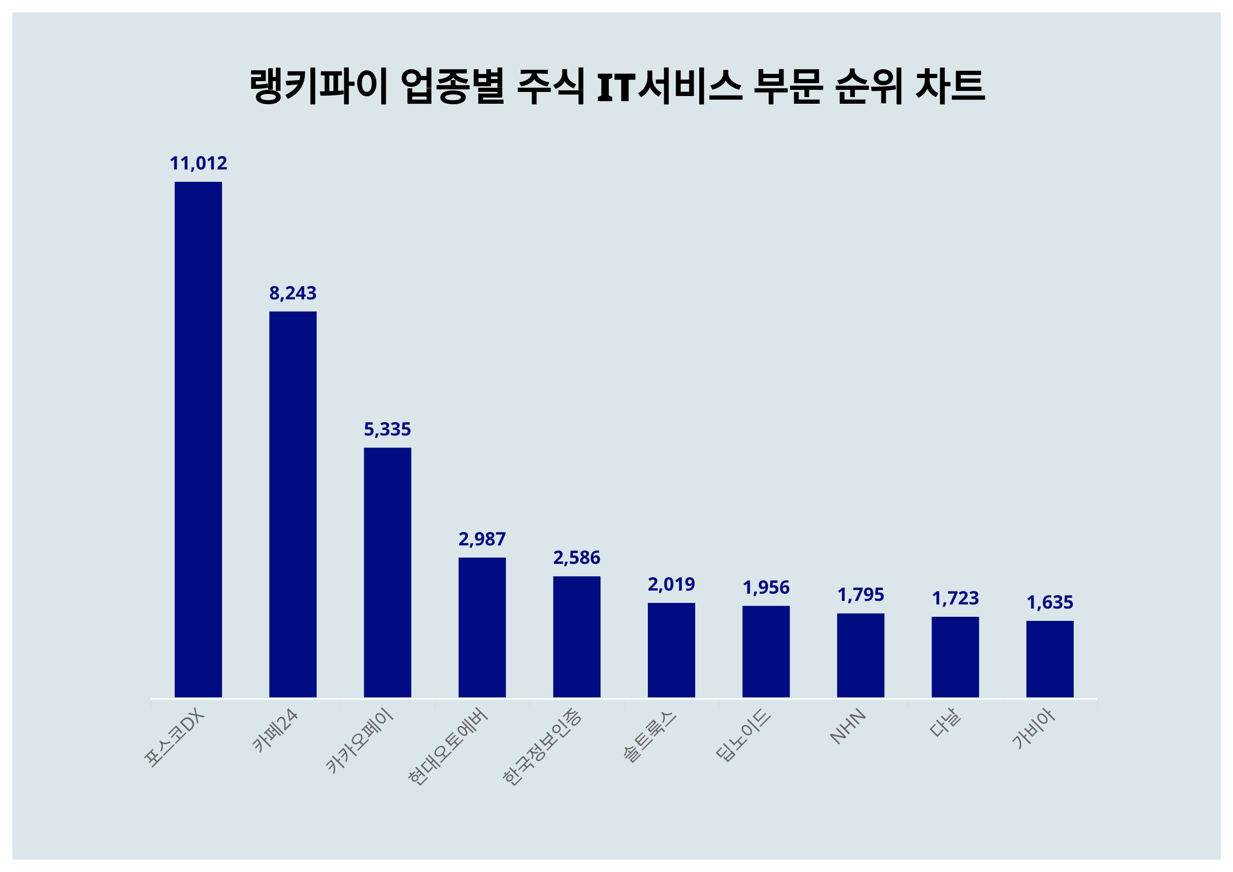 [출처: 랭키파이 업종별 주식 IT서비스 부문 트렌드 테이블]