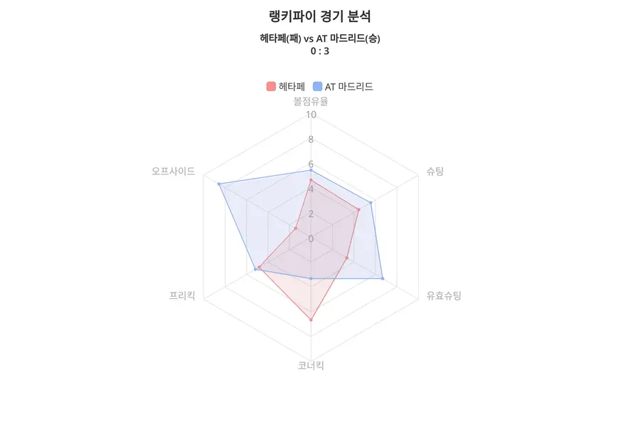 헤타페 대 AT 마드리드 대결 결과로, 헤타페는 아쉽게도 홈에서의 득점이 없었다. AT 마드리드는 그리즈만이 3득점을 기록했다. 아래 제공된 표에서는 경기에 출전한 선수들의 세부 기록을 살펴볼 수 있다.