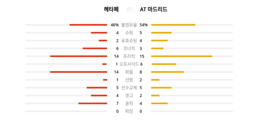 | AT 마드리드 | 득점 | 도움 | 슈팅 | 유효슈팅 | 패스 | 인터셉트 | 패스차단 | 태클 | 파울 | 걷어내기 | 경고 | 퇴장 |