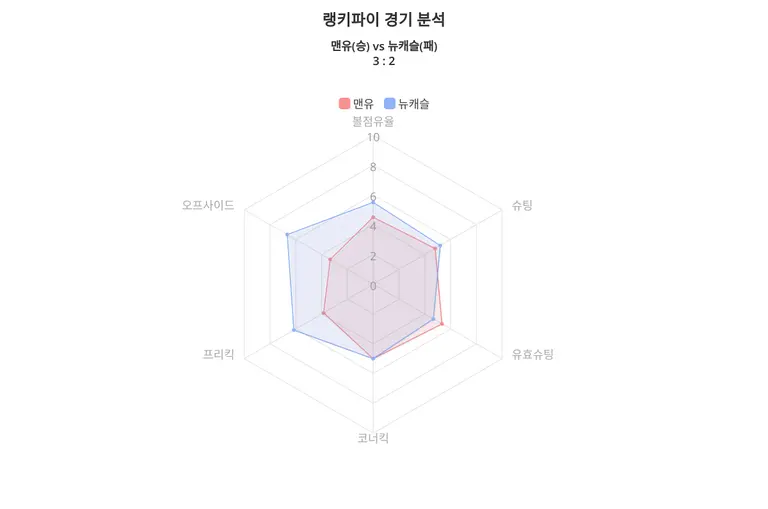 2024년 5월 16일에 치뤄진 2023-24 프리미어리그, 홈팀 맨유가 어웨이팀 뉴캐슬을 올드 트래포드로 불러들여 치열한 공방 끝에 3:2 맨유가 승리했다. 경기 결과 데이터는 아래와 같다.