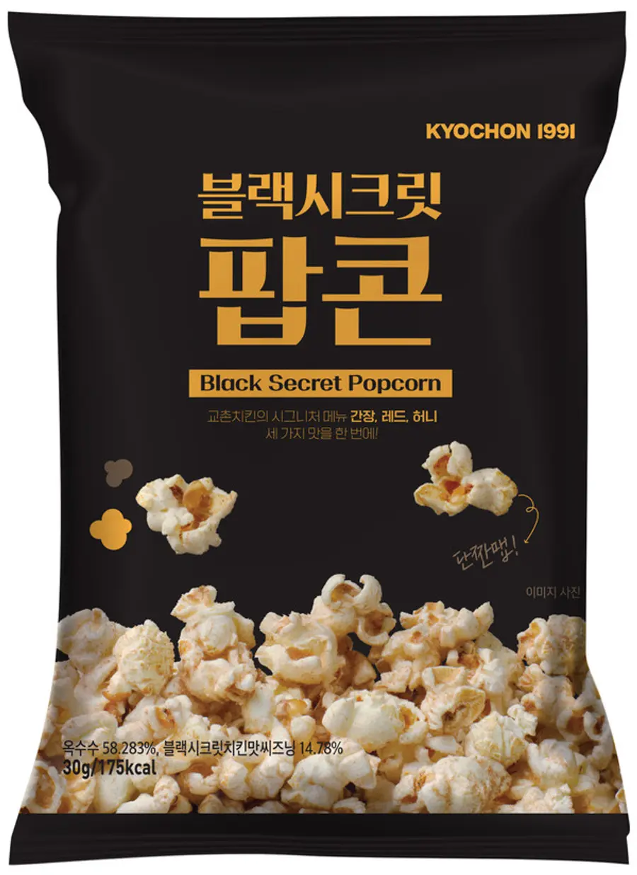 블랙시크릿팝콘은 교촌의 시그니처 메뉴 중 하나인 블랙시크릿치킨의 맛을 팝콘으로 즐길 수 있도록 한 제품이다.