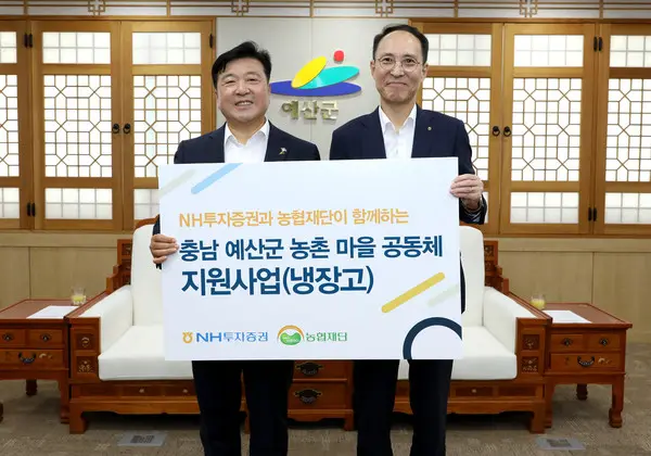 NH투자증권(대표이사 윤병운)은 충청남도 예산군 마을공동체에 냉장고 77대를 전달했다고 21일 밝혔다. NH투자증권은 이날 예산군청에서 냉장고 전달식을 진행했으며, 전달식에는 김용기 NH투자증권 부사장, 최재구 예산군수 등이 참석했다.