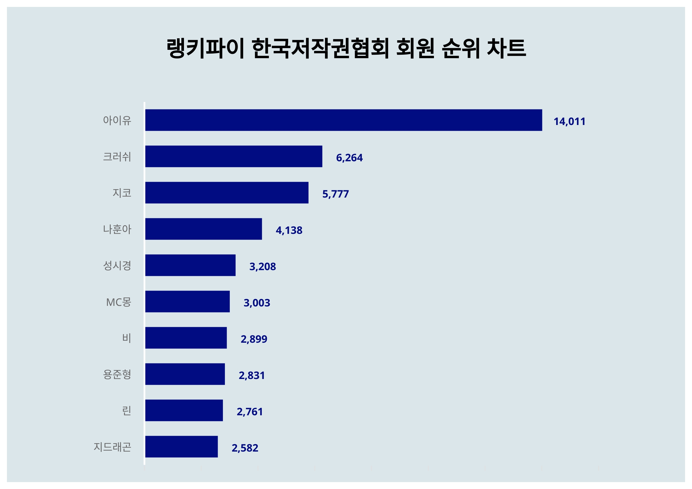 | 1 | 아이유 | 14,011 | 12,874 | 1,137 | 8.8% |