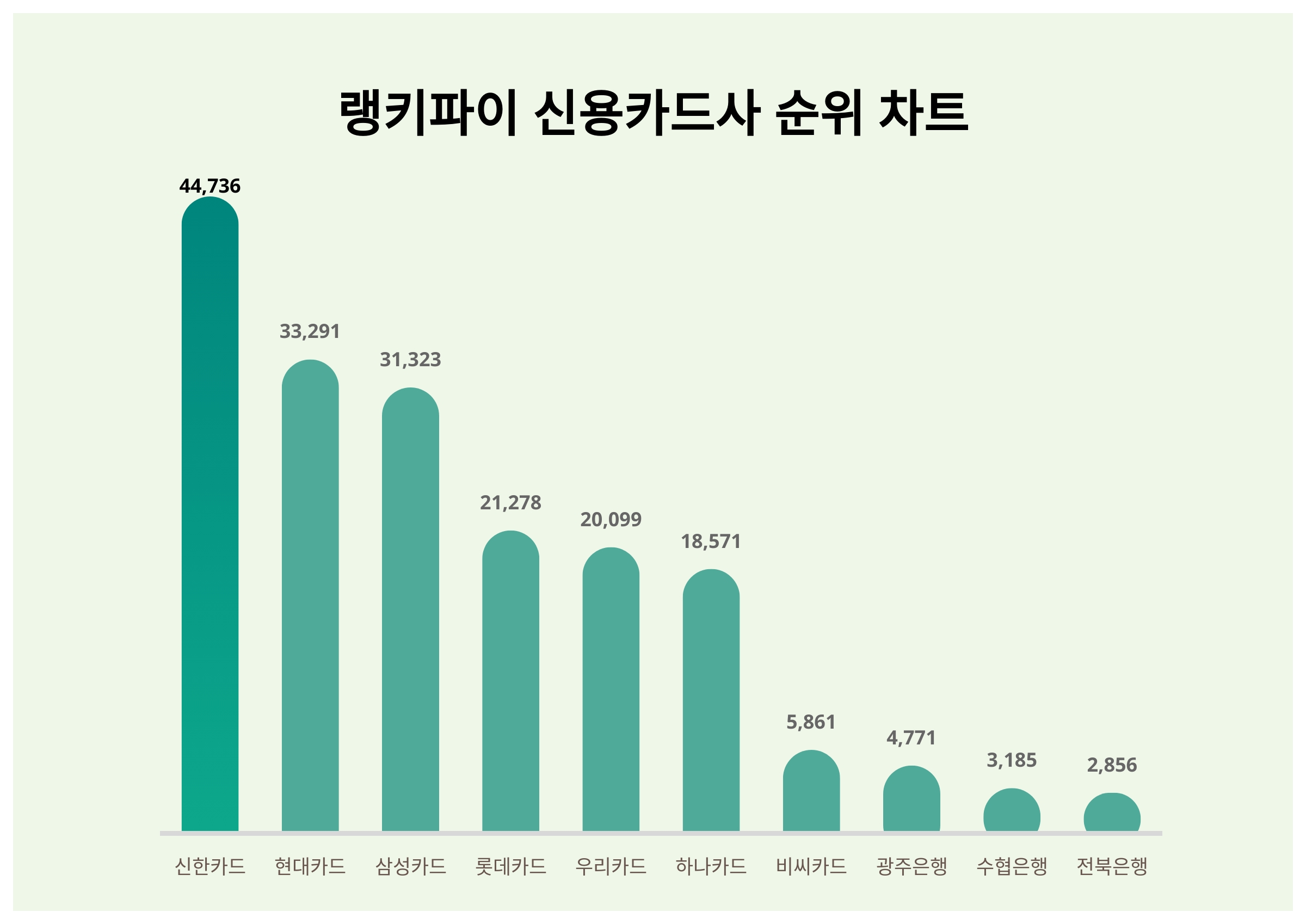 | 1 | 신한카드 | 44,736 | 37,374 | 7,362 | 19.7% |