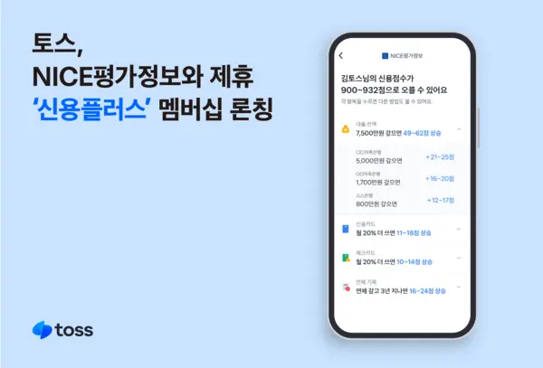 토스 관계자는 “개인에게 맞춰 구체적으로 신용점수 상승 방법을 보여주는 것이 신용플러스만의 특징”이라며 “토스 사용자들이 신용점수 관리 또한 간편하고 정확하게 진행할 수 있도록 앞으로도 NICE평가정보와 긴밀하게 협업을 지속해 나갈 예정”이라고 전했다.