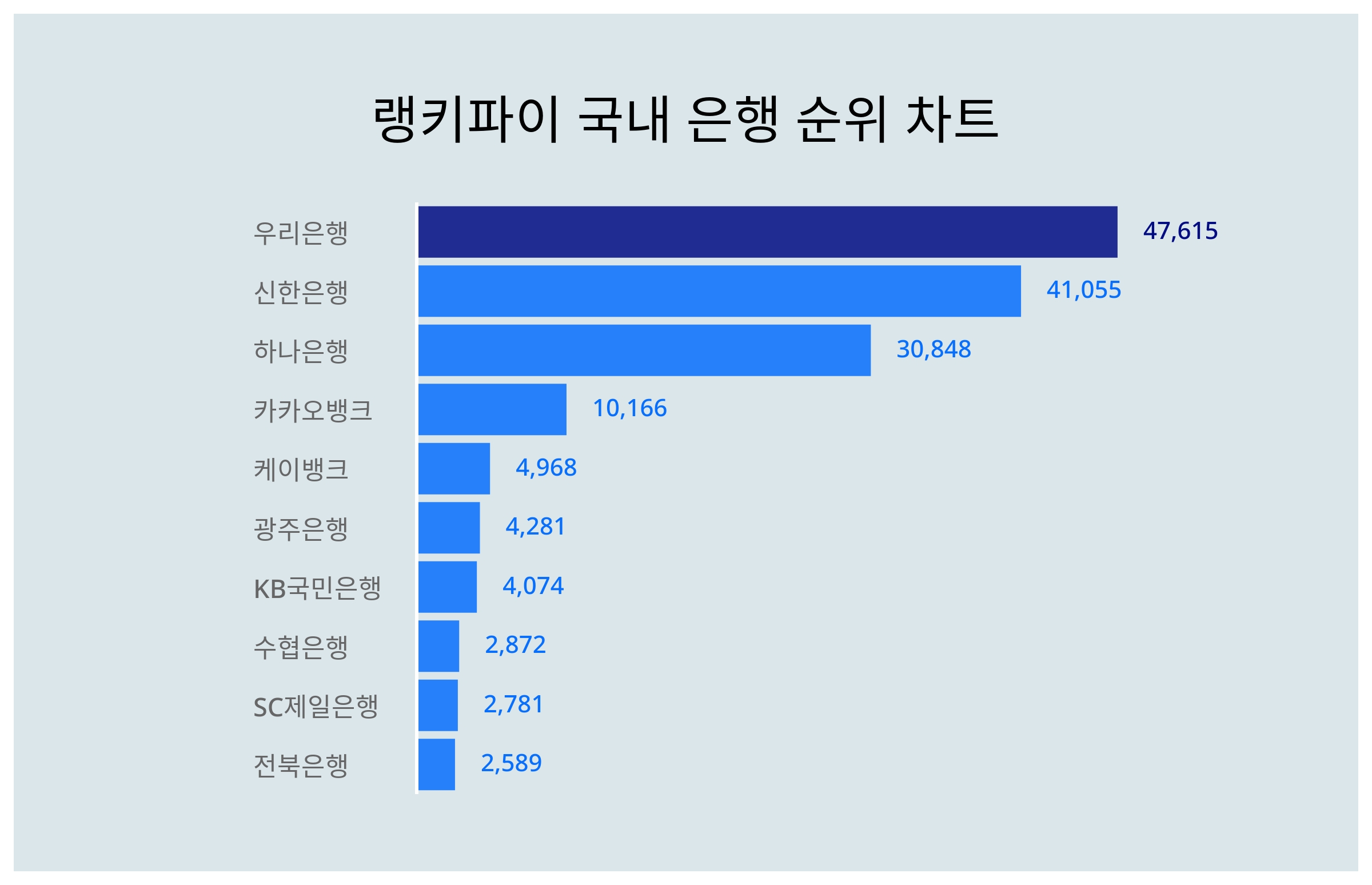 | 1 | 우리은행 | 47,615 | 42,839 | 4,776 | 11.1% |