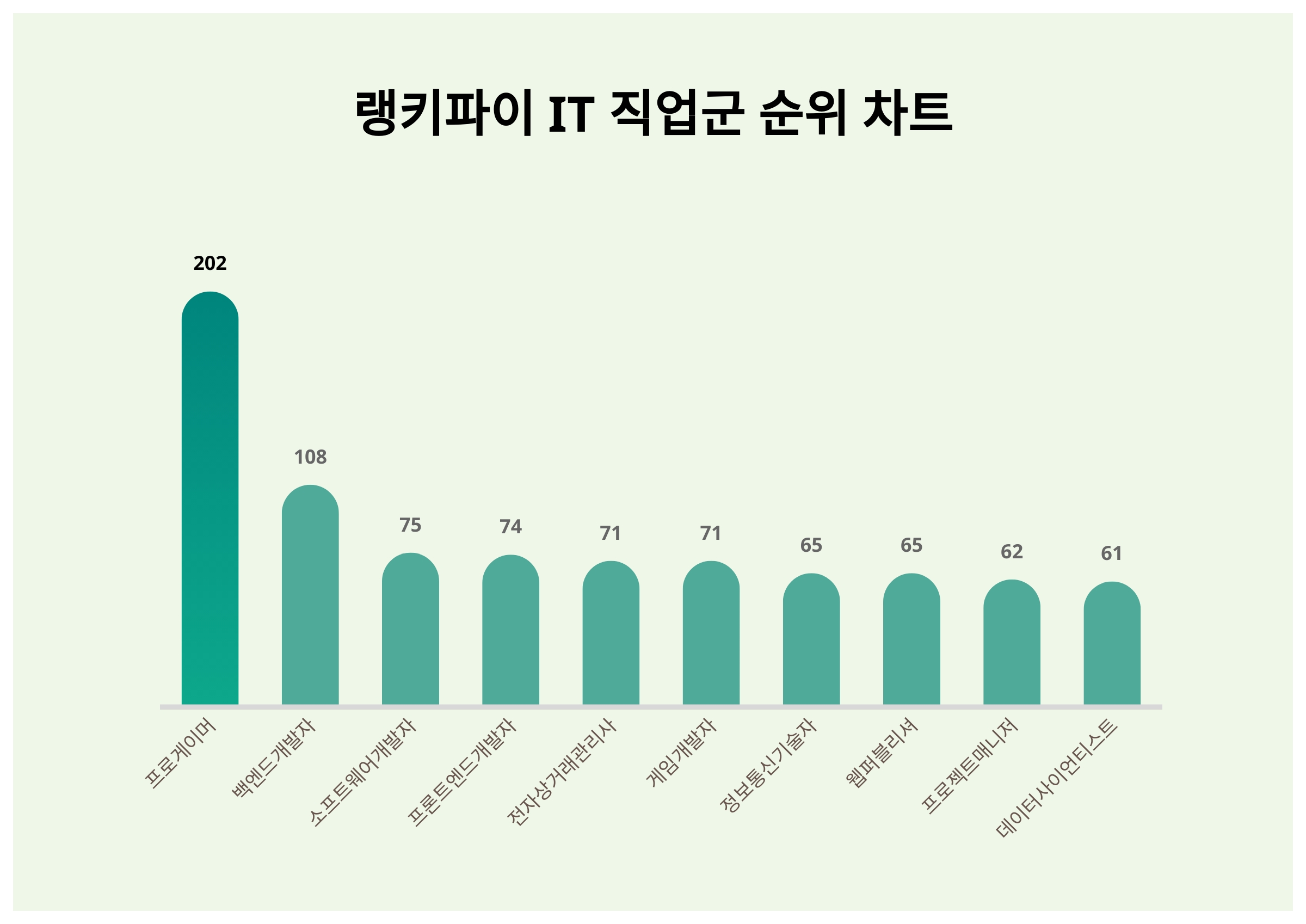 ▲IT 직업군 트렌드 지수 분석 결과 ⓒ랭키파이