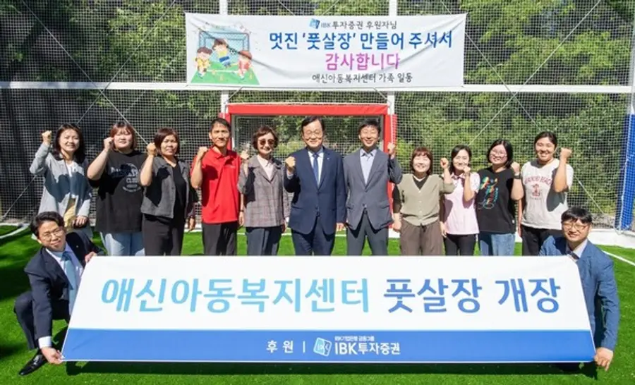 IBK투자증권은 경기도 동두천 ‘애신아동복지센터’에서 풋살장 개장식을 가졌다고 28일 밝혔다.