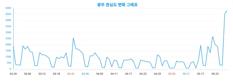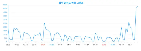 이번에 공개된 광무 관련 90일간 트렌드 변화 그래프는 트렌드 변동을 데이터로 흥미롭게 보여주고 있다.