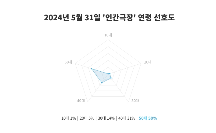 최근 5월 31일에 진행한 인기 트렌드 인간극장에 대한 성별 및 연령별 관심도 분석 결과가 주목을 받고 있다.