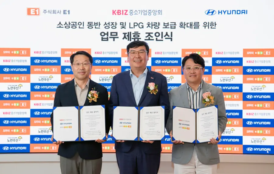 현대차는 최근 E1 사옥에서 안정일 현대차 국내판매추진실장, 김수근 E1 영업본부장, 이창호 중소기업중앙회 공제운영본부장 등 주요 관계자들이 참석한 가운데 ‘소상공인 동반 성장 및 LPG 차량 보급 확대를 위한 업무협약(MOU)’을 체결했다고 3일 밝혔다.