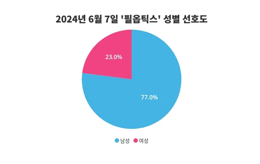 필옵틱스의 최신 성별 관심도 조사 결과, 전일 남성 73%, 여성 27%의 결과가 나왔고, 금일에는 남성이 77%의 비율로 필옵틱스에 더 높은 관심을 갖는 것으로 나타났다.