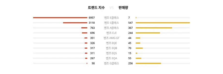 | 1 | 벤츠 E클래스 | 6,957 | 6,577 | 380 | 5.78% | 7 |
