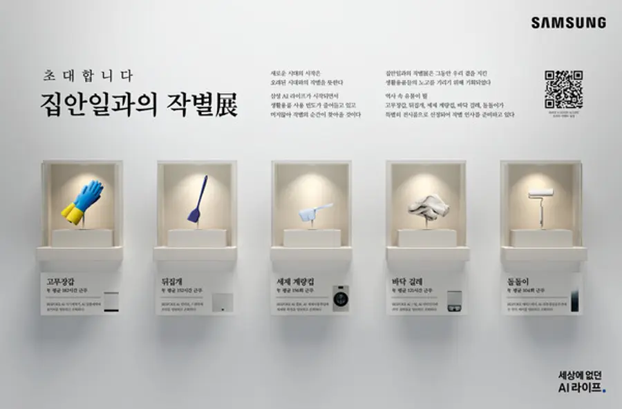 '집안일과의 작별展'은 삼성 AI 라이프를 누리는 소비자들의 일상에서는 더 이상 필요가 없어지면서 역사 속으로 사라질 생활용품들의 노고를 기리고 작별 인사를 전하는 컨셉의 전시다.