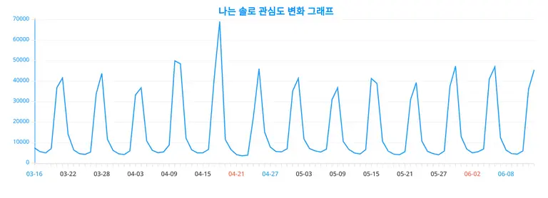 이번에 공개된 나는 솔로 관련 90일간 트렌드 변화 그래프는 트렌드 변동을 데이터로 흥미롭게 보여주고 있다.