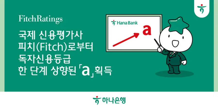 |스마트투데이=김국헌 기자| 하나은행은 글로벌 3대 신용평가사 중 하나인 피치(Fitch Rating)가 하나은행의 독자신용등급을 기존 ‘a-’에서 ‘a’로 한 단계 상향했다고 14일 밝혔다.