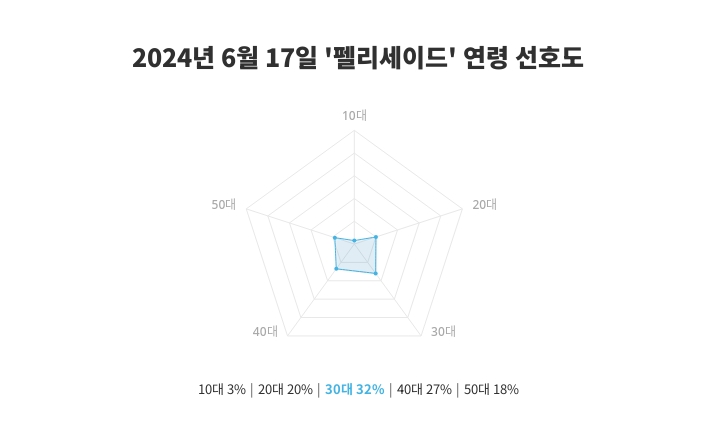 연령별 선호도 조사에서 30대의 관심도가 32%로 나타나, 특히 30대에게서 높은 인기를 확인할 수 있었다. 이는 전일 10대 3%, 20대 20%, 30대 32%, 40대 28%, 50대 17%와 비교하여 연령별 관심의 변화를 설명해 준다.