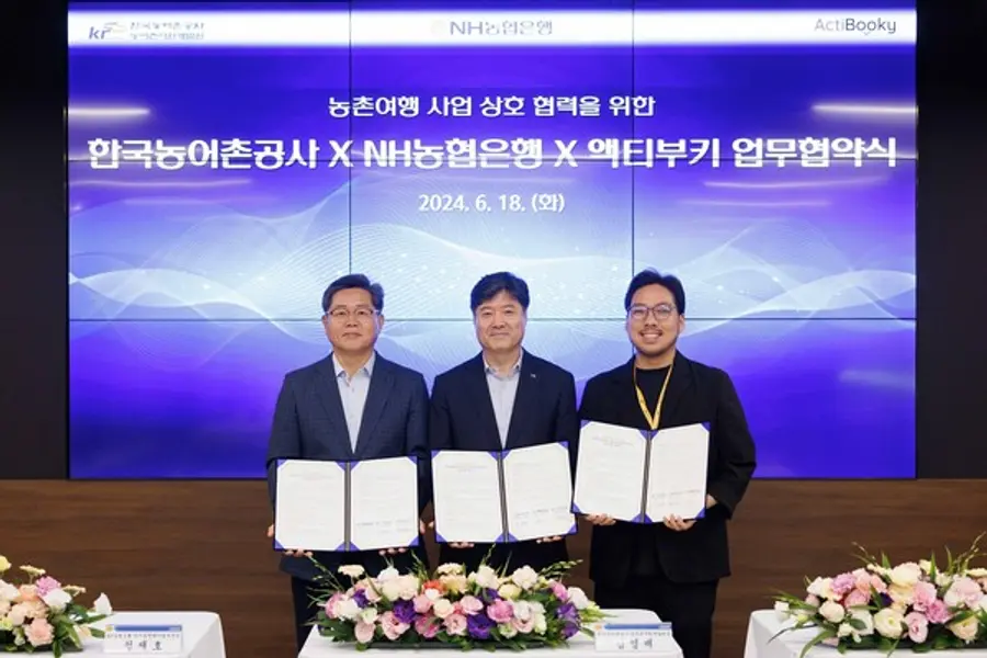 NH농협은행은 18일 서울 서초구 양재동 NH디지털혁신캠퍼스에서 한국농어촌공사 농어촌자원개발원, 농촌여행 전문기업 액티부키와 농촌여행서비스 사업 상호 협력을 위한 3자 간 업무협약을 체결했다.