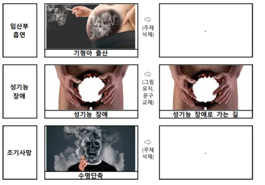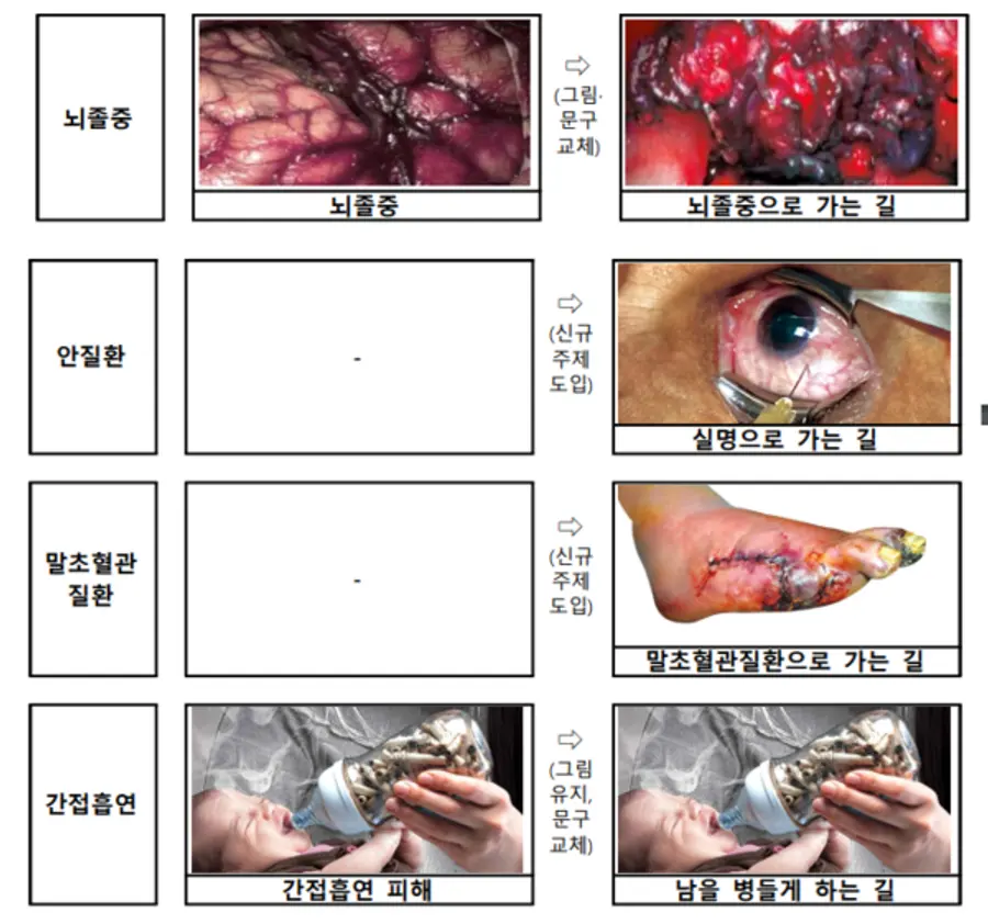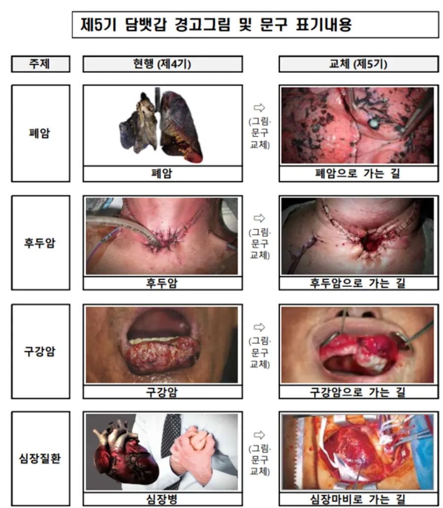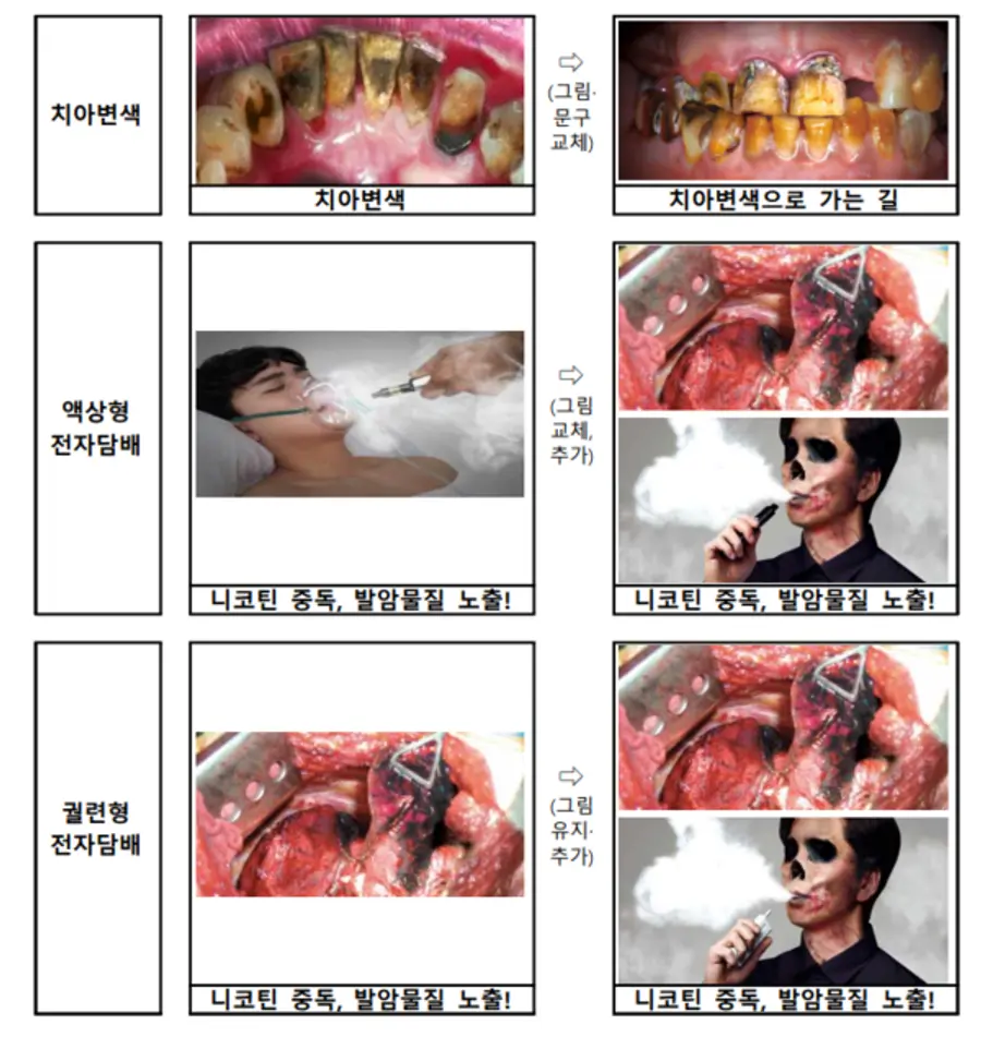 전자담배 2종(궐련형·액상형)은 그림 주제를 늘리되 문구는 현행안을 유지한다.