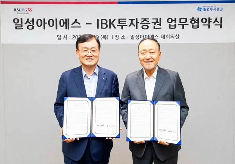 |스마트투데이=김세형 기자| 일성아이에스(회장 윤석근)와 IBK투자증권(대표이사 서정학)이 시너지 창출과 신사업 발굴을 위해 손을 잡았다.