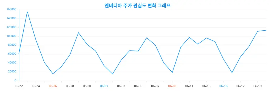 랭키파이가 실시한 빅데이터 조사에 따르면, 엔비디아 주가 분할, 엔비디아 주가 전망, 엔비디아 주가 가격, 엔비디아 주가 폭락, 엔비디아 주가 원화와 같은 관련 키워드가 눈에 띄게 주목을 받고 있어, 엔비디아 주가 관련 트렌드의 발전 방향을 이해하는 지표를 제공한다.