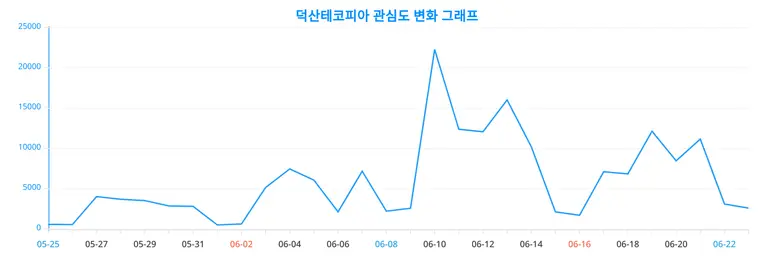 이는 덕산테코피아에 대한 일간 트렌드 추이가 어떻게 변화했는지를 세밀하게 드러내고 있다.