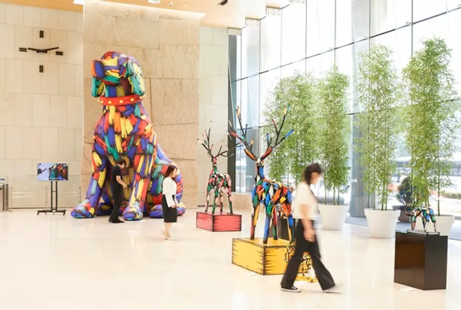‘도시동심(都市童心)’ 전시에서 사슴, 토끼, 강아지 등 친근한 동물이 작가의 상상 속에 다채로운 색채와 스테인리스라는 단단한 소재로 새롭게 태어난다. 동물 조각상은 도심 속 새로운 동심을 불러일으키며, 낯선 현대미술의 심리적 장벽을 낮추고 편안하게 다가온다.