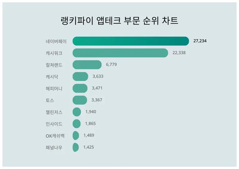 AI기반 빅데이터 프로그램을 갖춘 랭키파이는 각 분야별 트렌드지수를 도출한다. 이날 랭키파이 분석에 따르면 네이버페이가 6월 4주차 기준 앱테크 부문 부문 트렌드지수 1위로 집계됐다.