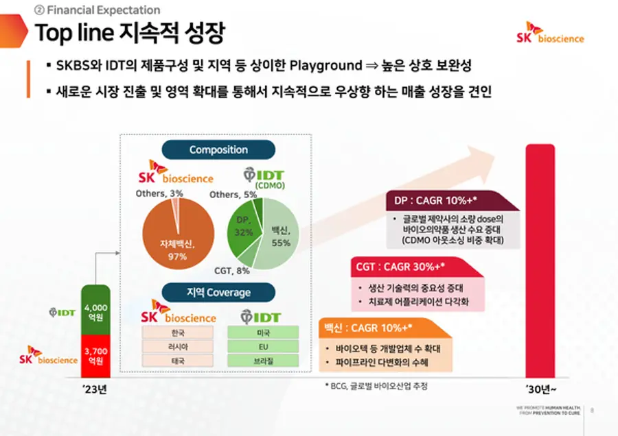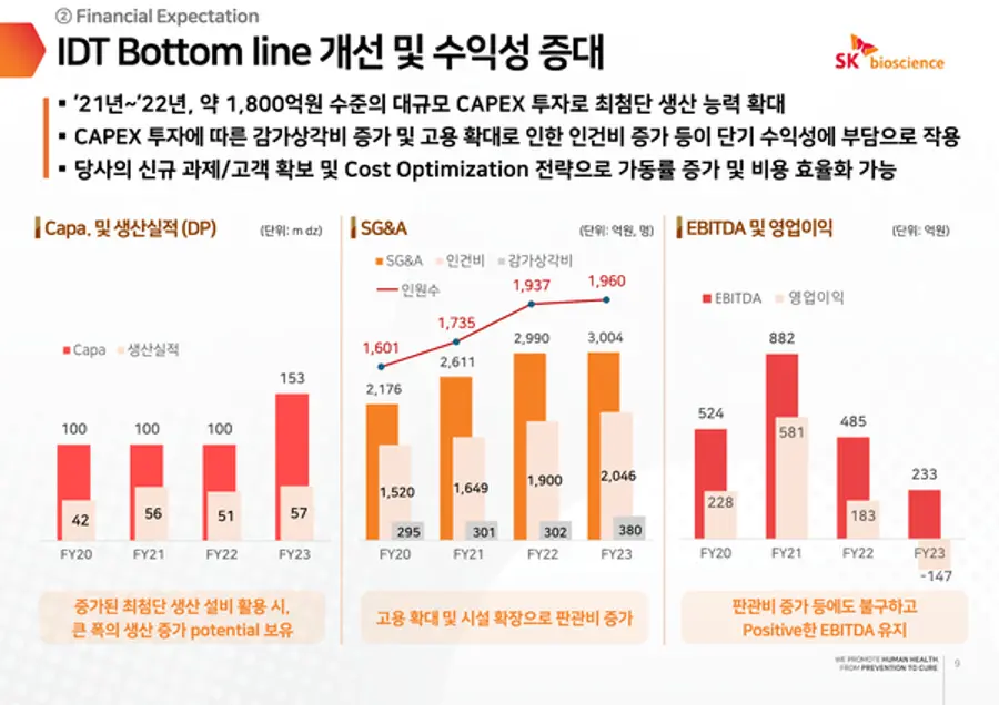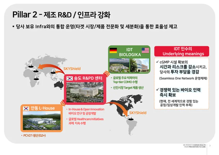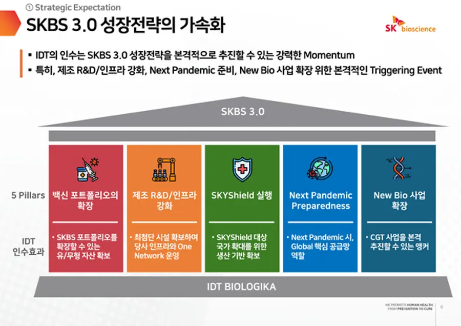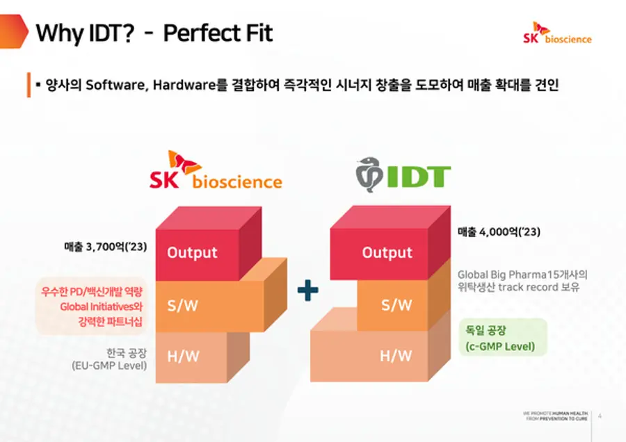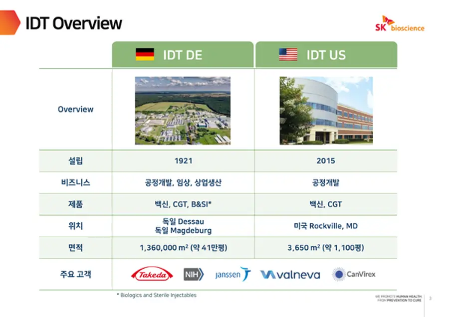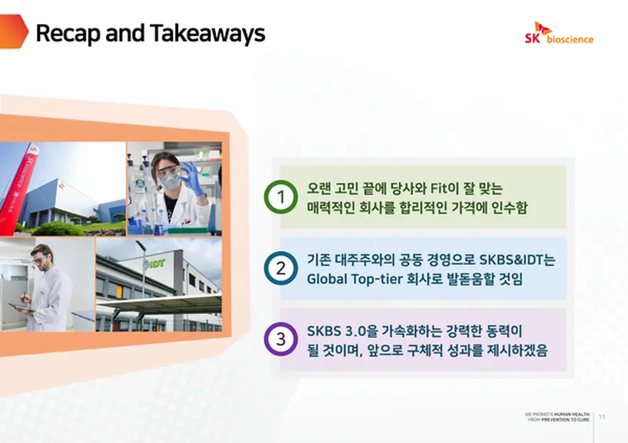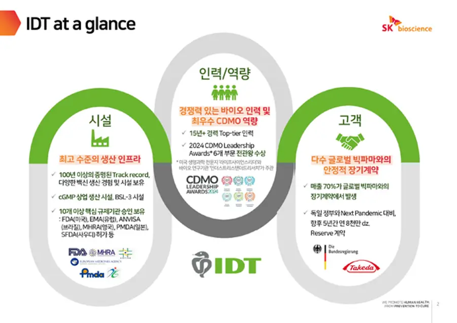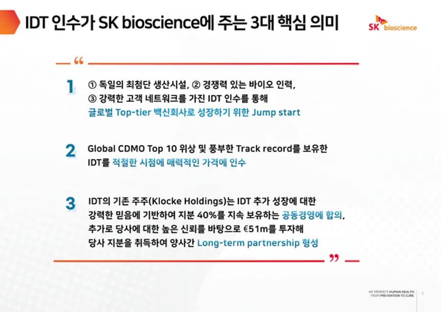 SK바이오사이언스는 IDT 인수를 발표하면서 애널리스트들을 위한 설명 자료도 별도로 냈다. 자료 내용은 다음과 같다.