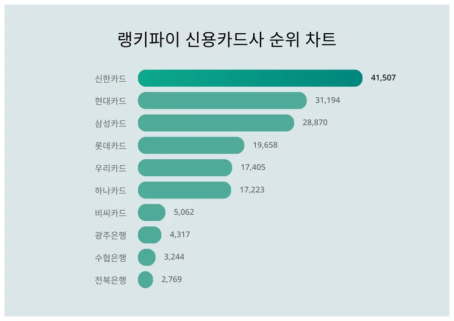 ▲신용카드사 트렌드 지수 분석 결과 ⓒ랭키파이