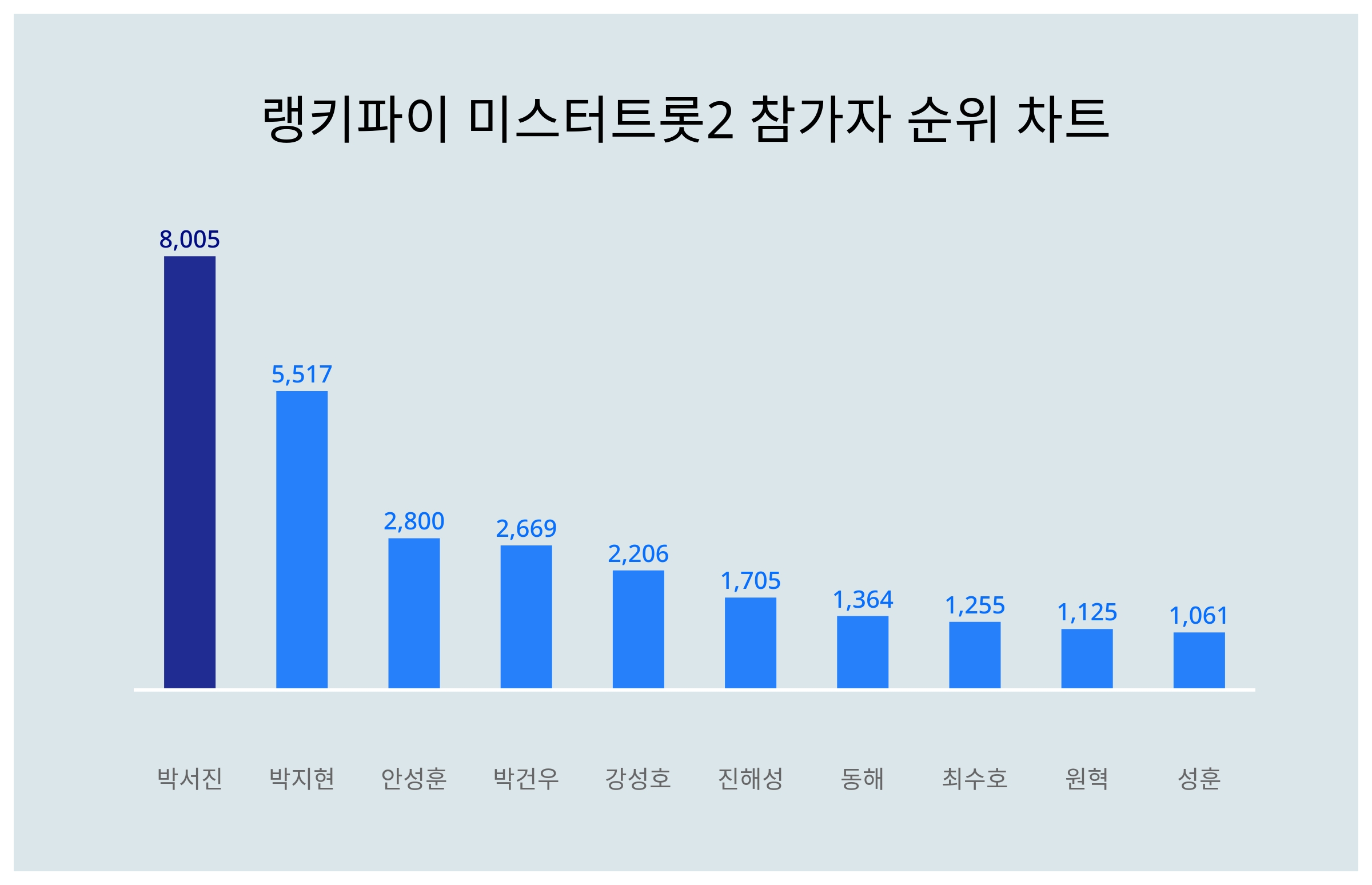 ▲미스터트롯2 참가자 트렌드 지수 분석 결과 ⓒ랭키파이