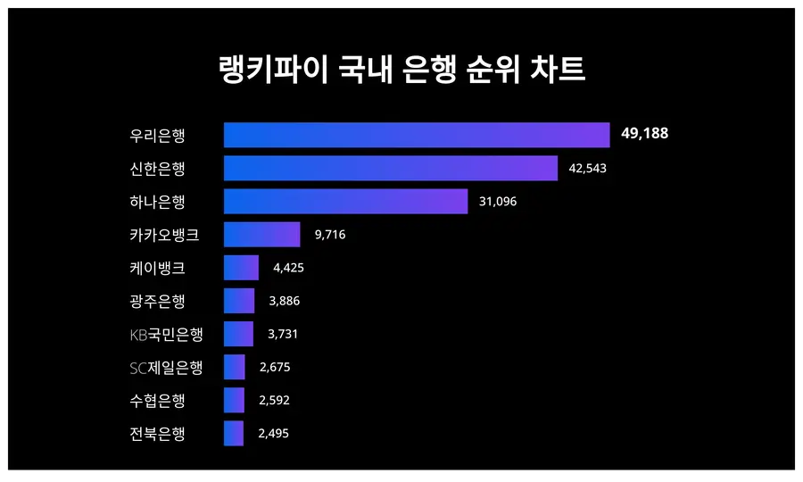 | 1 | 우리은행 | 49,188 | 52% | 48% |