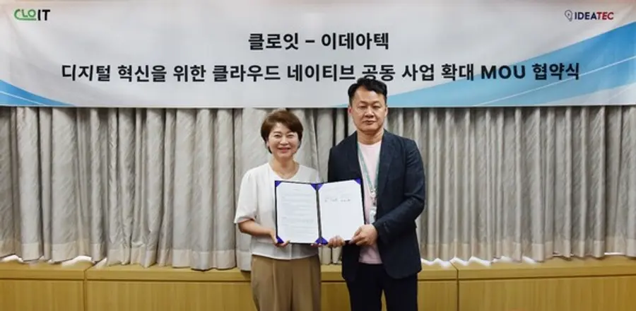 |스마트투데이=김세형 기자| 아이티센그룹 클로잇(대표 이세희)은 통합 연계 플랫폼 전문 기업 이데아텍(대표 어윤호)과 클라우드 네이티브 공동 사업 확대를 위한 제휴(MOU)를 체결했다고 3일 밝혔다.
