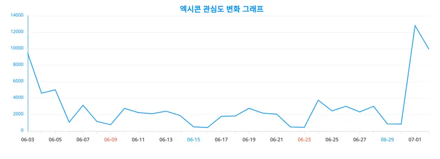 이는 엑시콘에 대한 일간 트렌드 추이가 어떻게 변화했는지를 세밀하게 드러내고 있다.