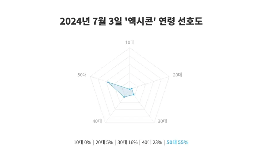 랭키파이가 7월 3일에 분석한 엑시콘의 인기 트렌드에 따른 성별 및 연령별 관심도가 주목을 받는 중이다.