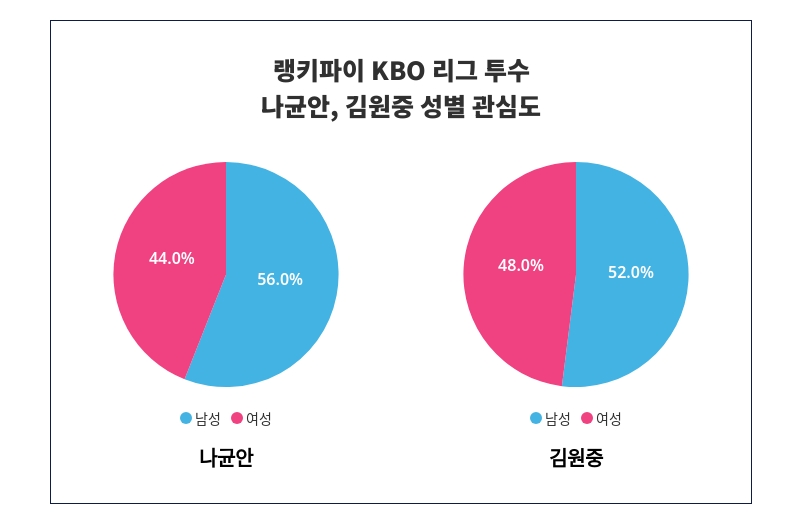 연령별 관심도 조사에서 나균안과 김원중의 관심도가 다양한 연령층 사이에서 어떻게 분포되어 있는지 명확히 드러났다. 조사 결과, 나균안은 특히 20대에서 36%의 높은 관심도를 기록하며 가장 큰 관심을 끌고 있는 것으로 나타났다. 나균안의 인기는 10대 9%, 20대 36%, 30대 29%, 40대 17%, 50대 9%순으로 이어지며, 각 연령대별에서 어떠한 관심을 받고 있는지가 조사되었다.