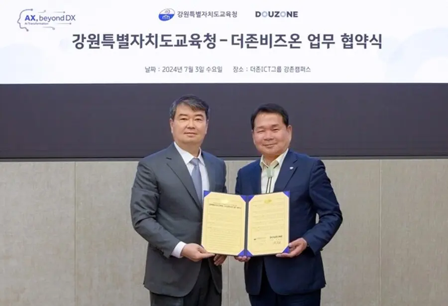 |스마트투데이=이주영 기자| 더존비즈온(대표 김용우)과 강원특별자치도교육청(교육감 신경호)은 미래 기술인재 육성을 목표로 ‘화천정보산업고등학교의 디지털마이스터고 지정’을 위한 업무협약을 체결했다고 4일 밝혔다.