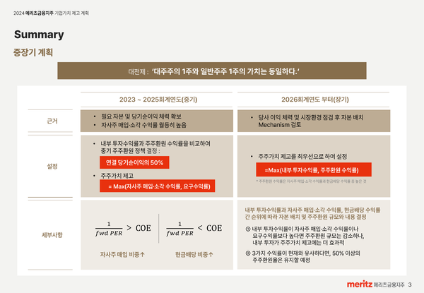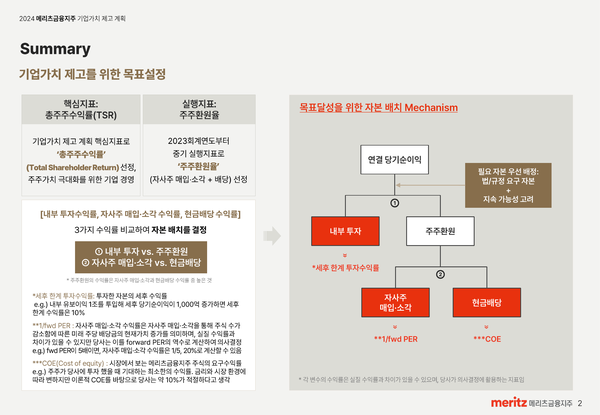 메리츠금융지주의 밸류업 핵심 내용은 다음과 같다.